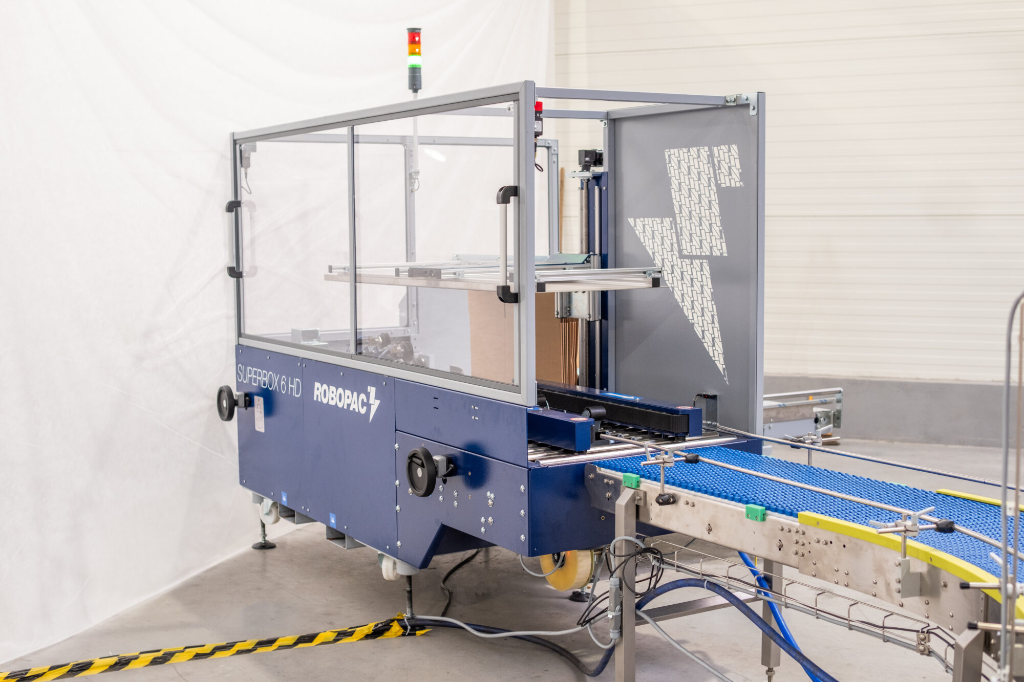 Zásadní výhodou linky je flexibilní paletizační jednotka, která zvládá manipulaci jak s kartony, tak s velkoobjemovými sáčky – bez nutnosti mechanických změn nebo přenastavení. Součástí je také kartonovací sekce s automatickým zakladačem a uzavíráním lepicí páskou, která zajišťuje plynulý provoz.